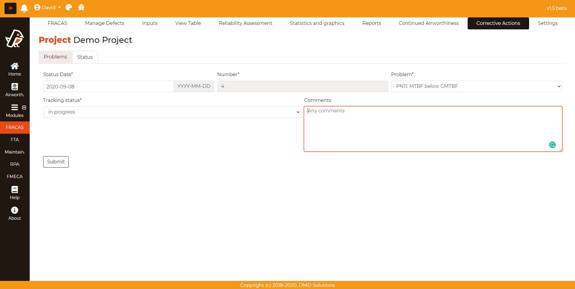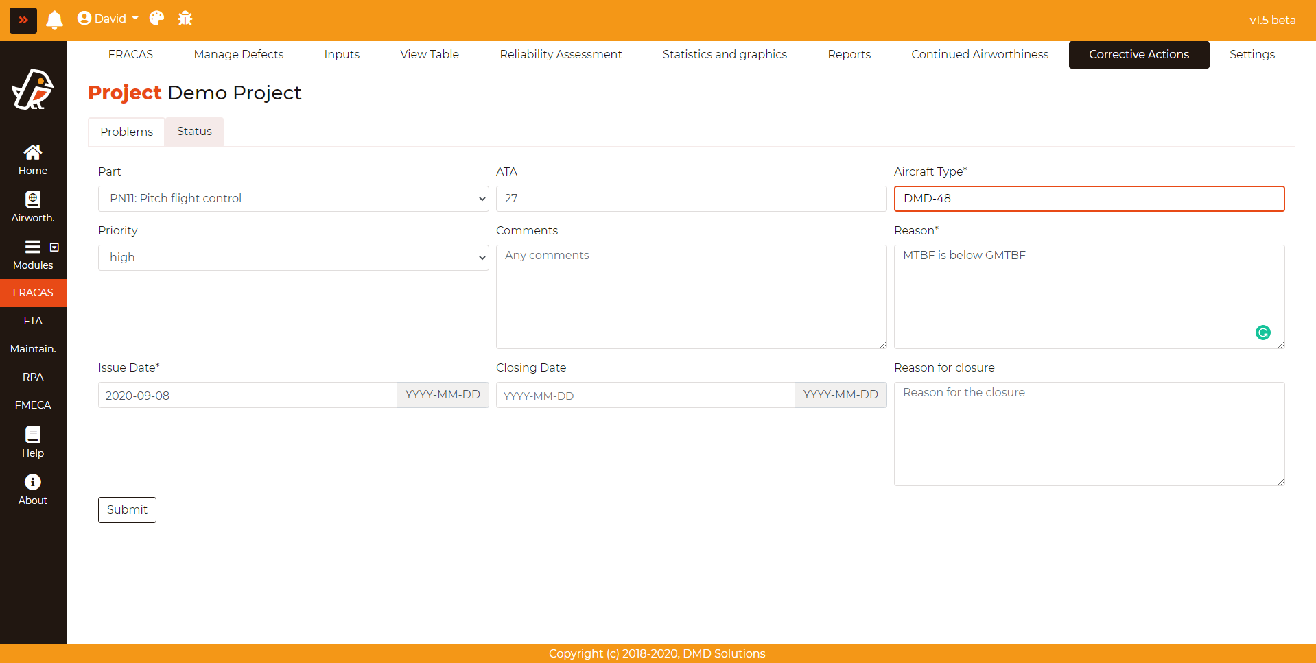 • Closing Date: Date when the problem is closed thanks to a corrective action