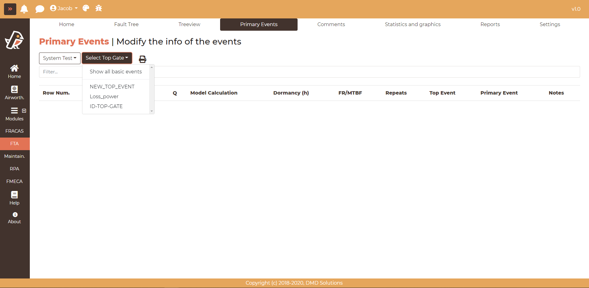 Click on Show all basics events to load all the primary events of the system. Click on one fault tree to load only the primary events of the selected fault tree.