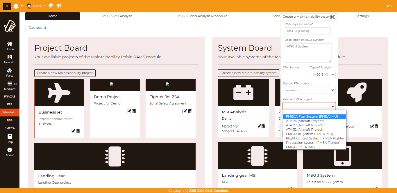 First, a Maintainability System must be created and linked to the desired FMEA project as shown above.