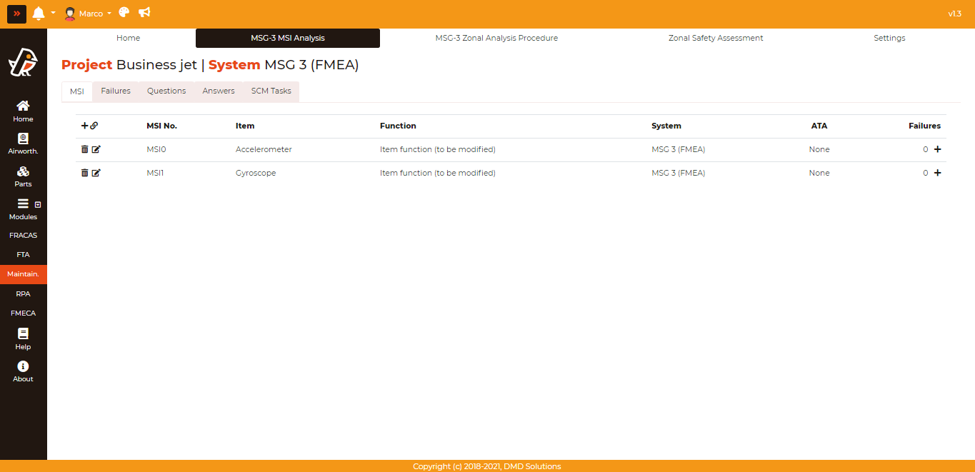 This interconnection provides a link to items and failure modes from FMEA projects to use within MSG-3 MSI Analysis.