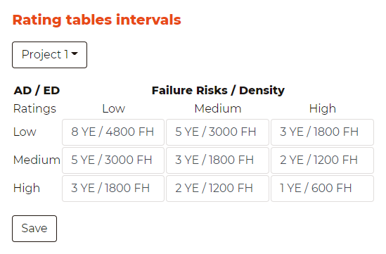 Rating tables intervals