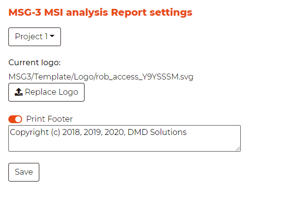 By selecting a project, the user can choose several parameters to customize the reports, including:
