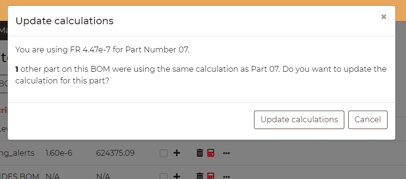 After computing the failure rate in the corresponding page, Robin gives the option to go back to the BOM. Note that, if the node has children, the computation is performed based on the failure rates of the children (see the RPA | Reliability Prediction Analysis section for computation details).