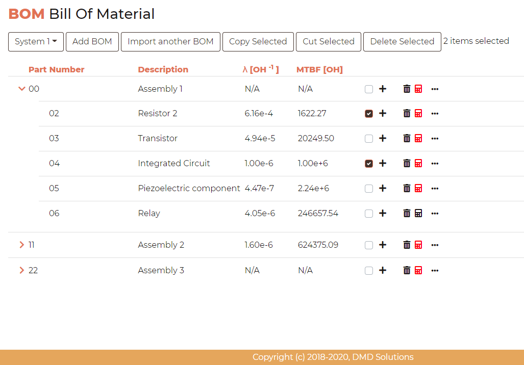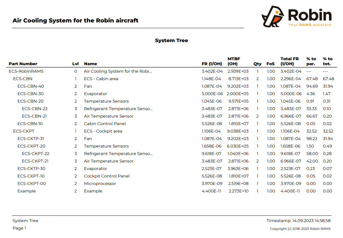 • System Tree: The hierarchy (levels) of the BOM is presented. Moreover, the overall contribution of each item to the failure rate is also given