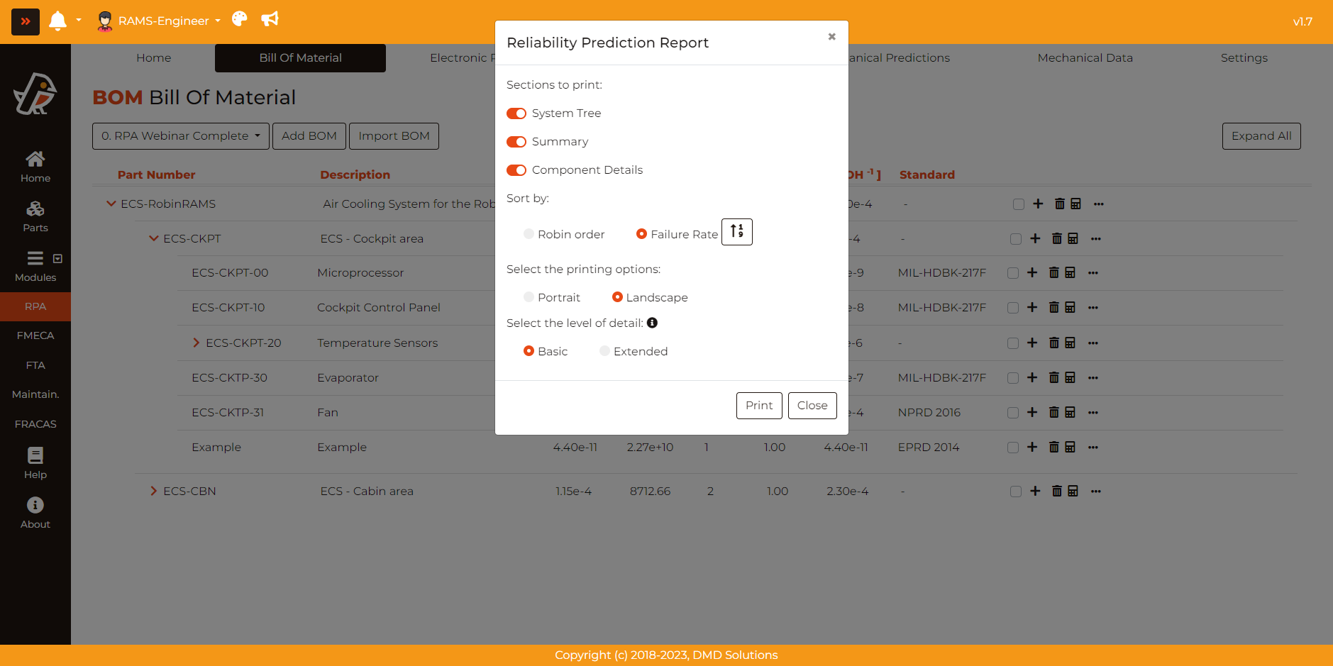 • Reliability Prediction Report: It prints a PDF from the BOM.