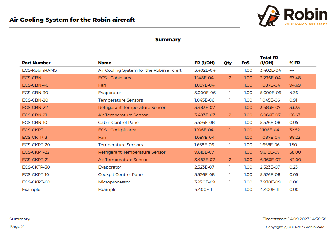 In this form, the user can select the sections to be printed. Also, the items can be sorted by failure rate (lower to higher or viceversa) or the order that they appear in Robin website interface. The last option allows the user to choose the level of details in the Component details section (explained below).