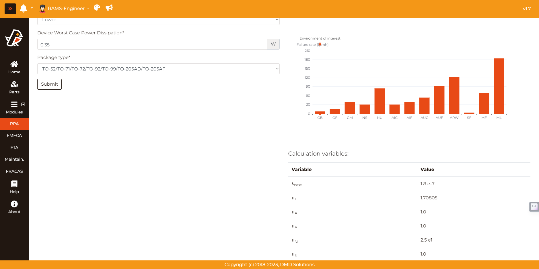 When entering all the necessary parameters, the user can compute the failure rate and the following data is obtained: